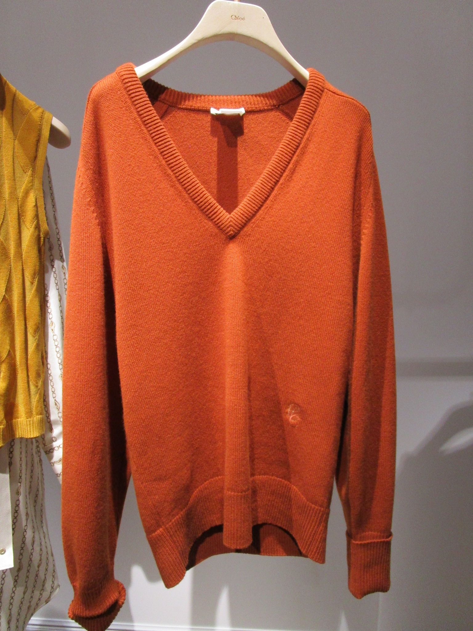 カシミヤ100%の上質ニットは「C」の刺繍がポイント。