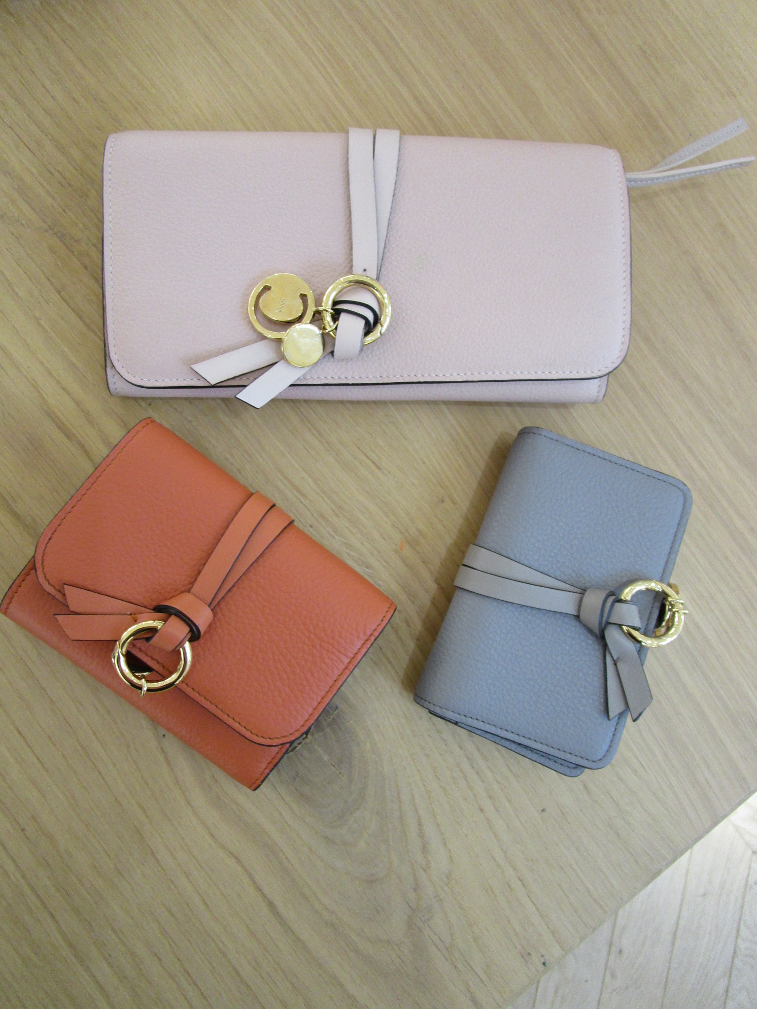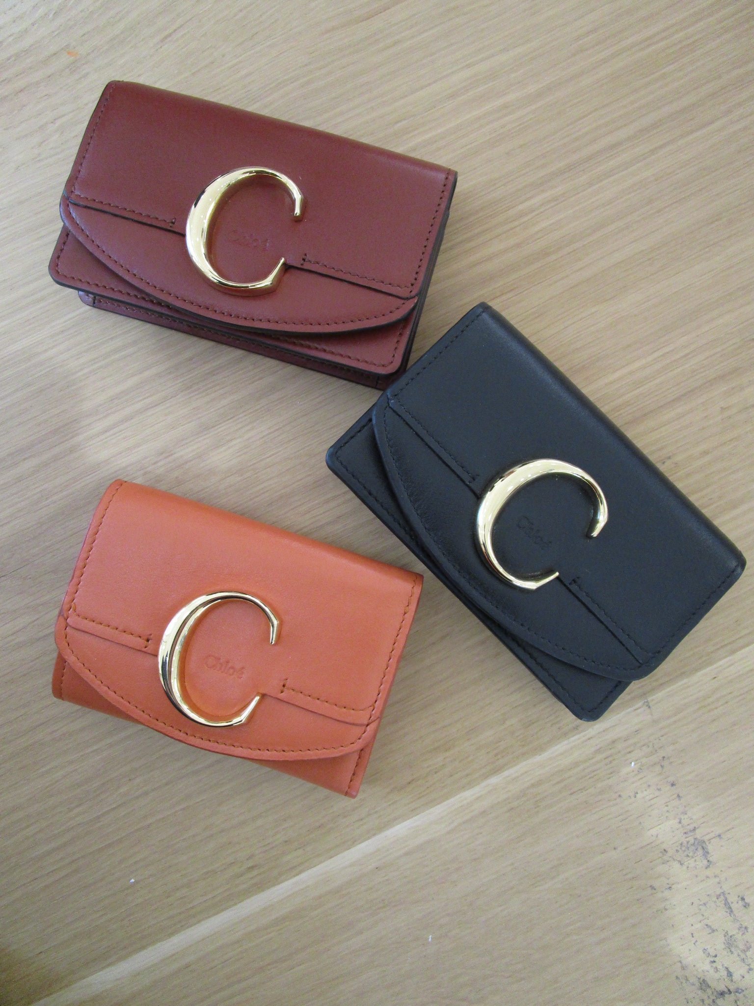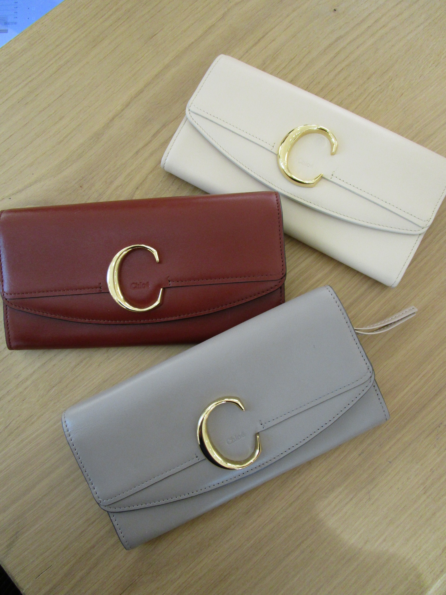 「CHLOE C」のシリーズも小さ目のバックにも入れ易い二つ折り財布や、三つ折り財布も大人気です。