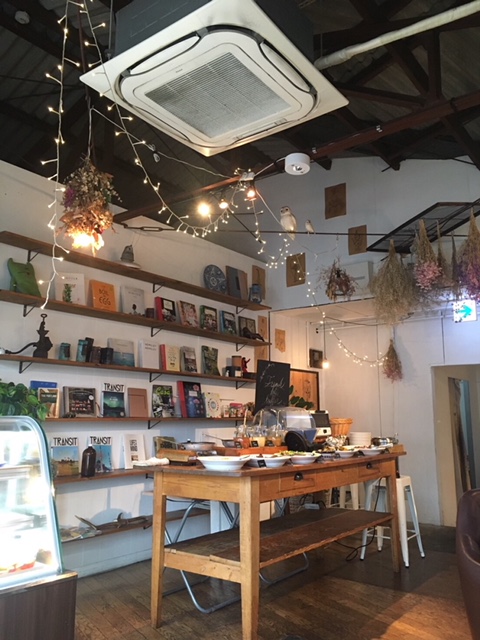 壁に本や雑誌、天井にドライフラワーが飾ってあり、すごく素敵な空間でした。