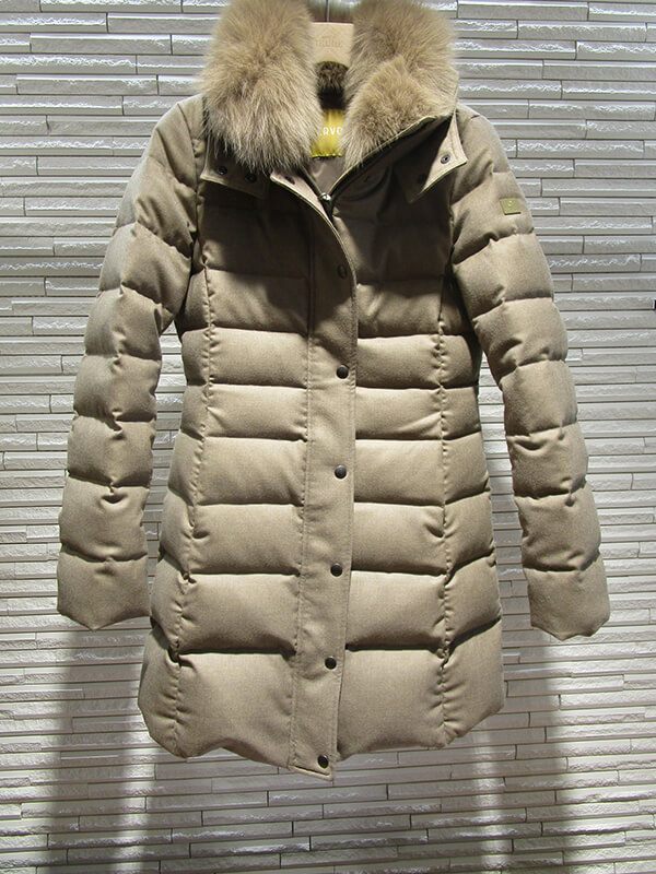 イタリアのスーパー120’s糸を使用したウール地ダウンコート。