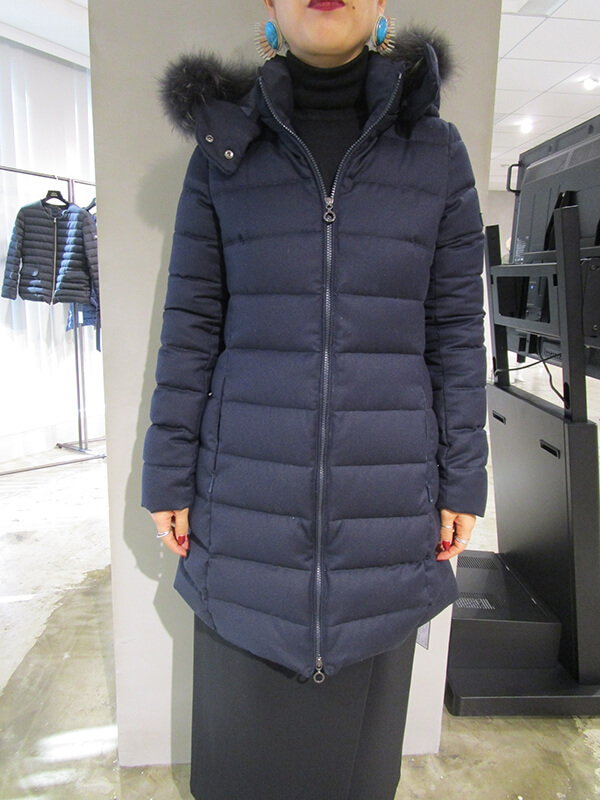 ダウンコートでありながら、ウール地のエレガントさを追求するならこのモデル!