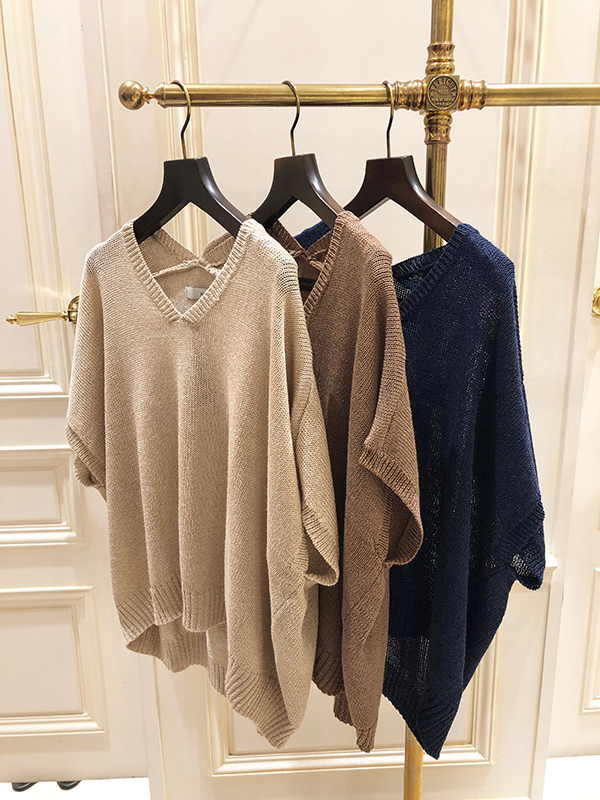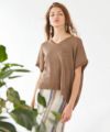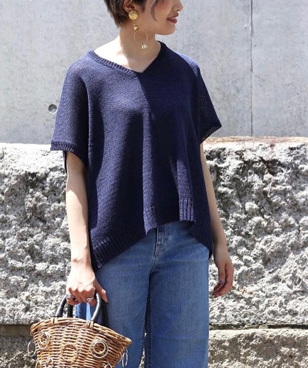 ネック部分はVネックで程よくデコルテ見せをしてくれるので、女性らしさをプラス。