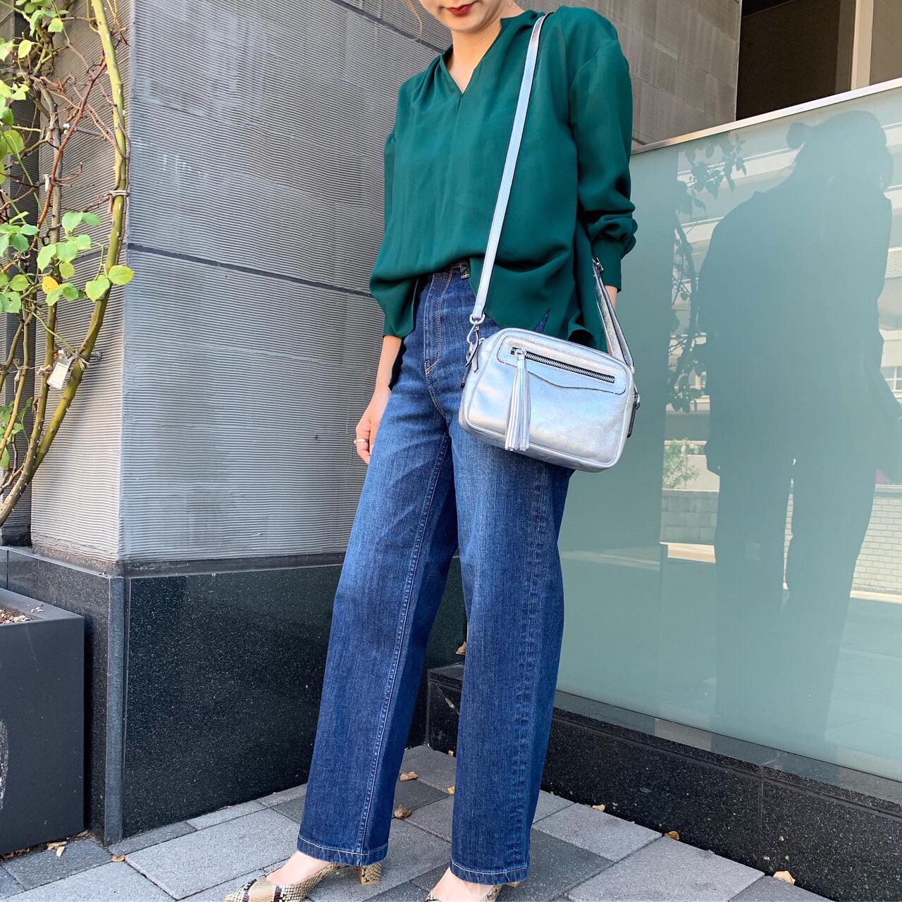 ブルーデニムで合わせるとカジュアル感がぐっと増し、OFFの日のお出かけも楽しくなるコーディネートに。