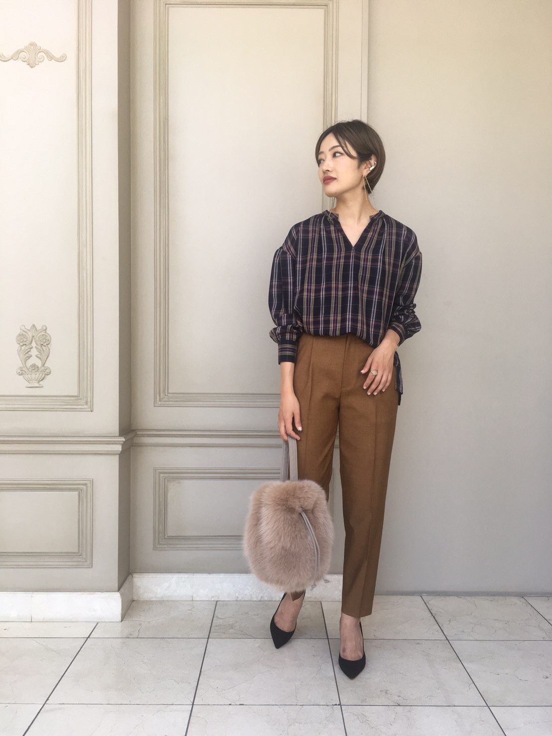 お色はブラウン、グリーン、アイボリー、チェック柄の4色。(チェックのみ¥26,000+TAX)