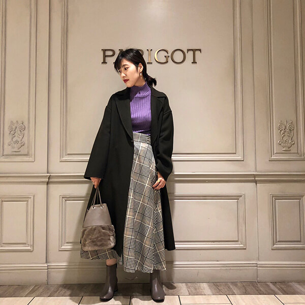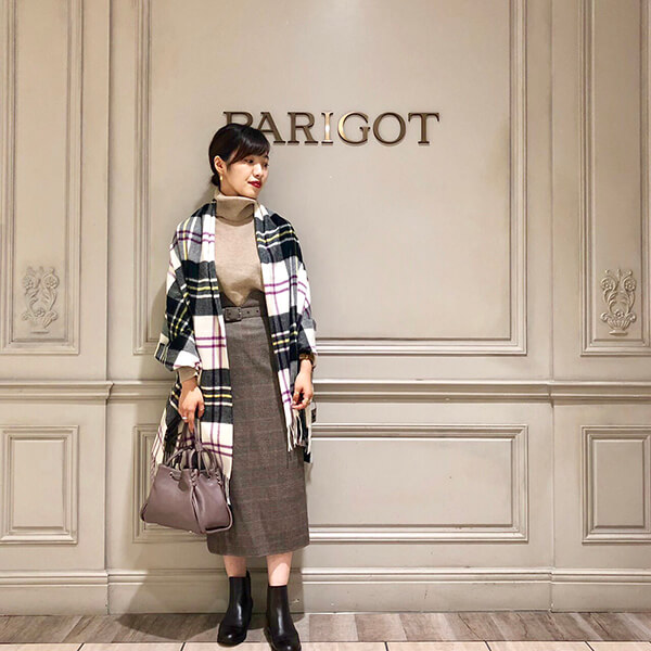 コートからチラッと見えるチェック柄がかわいいですよね!