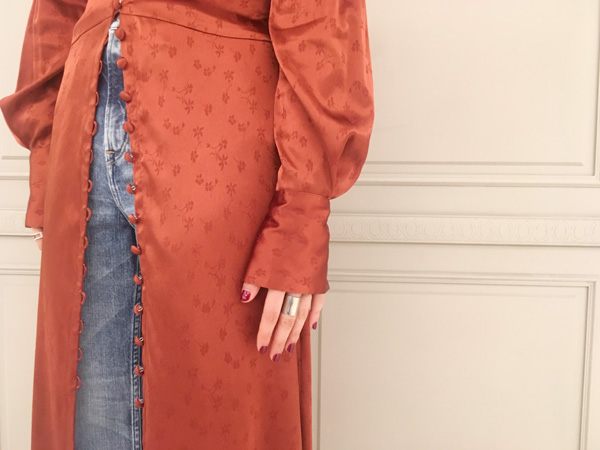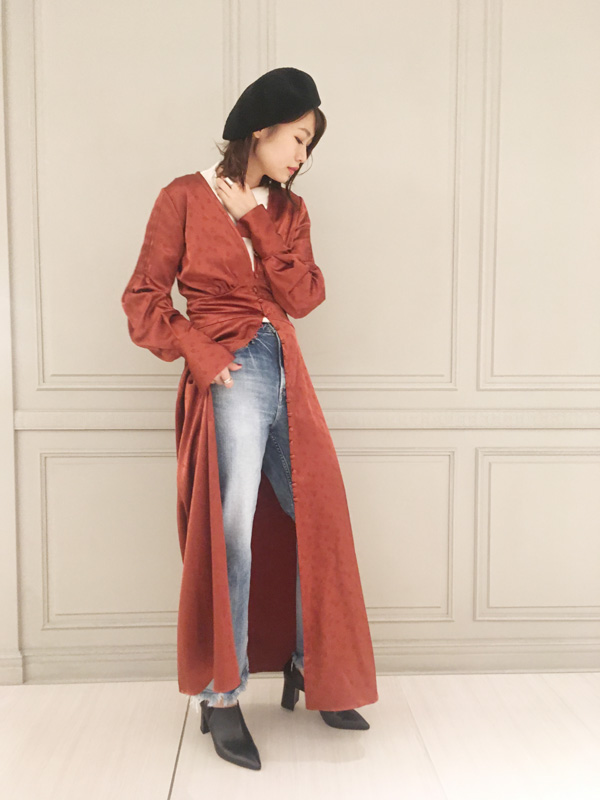 サテン地の贅沢なワンピースは羽織としてカジュアルダウンして着こなすのもおすすめです!