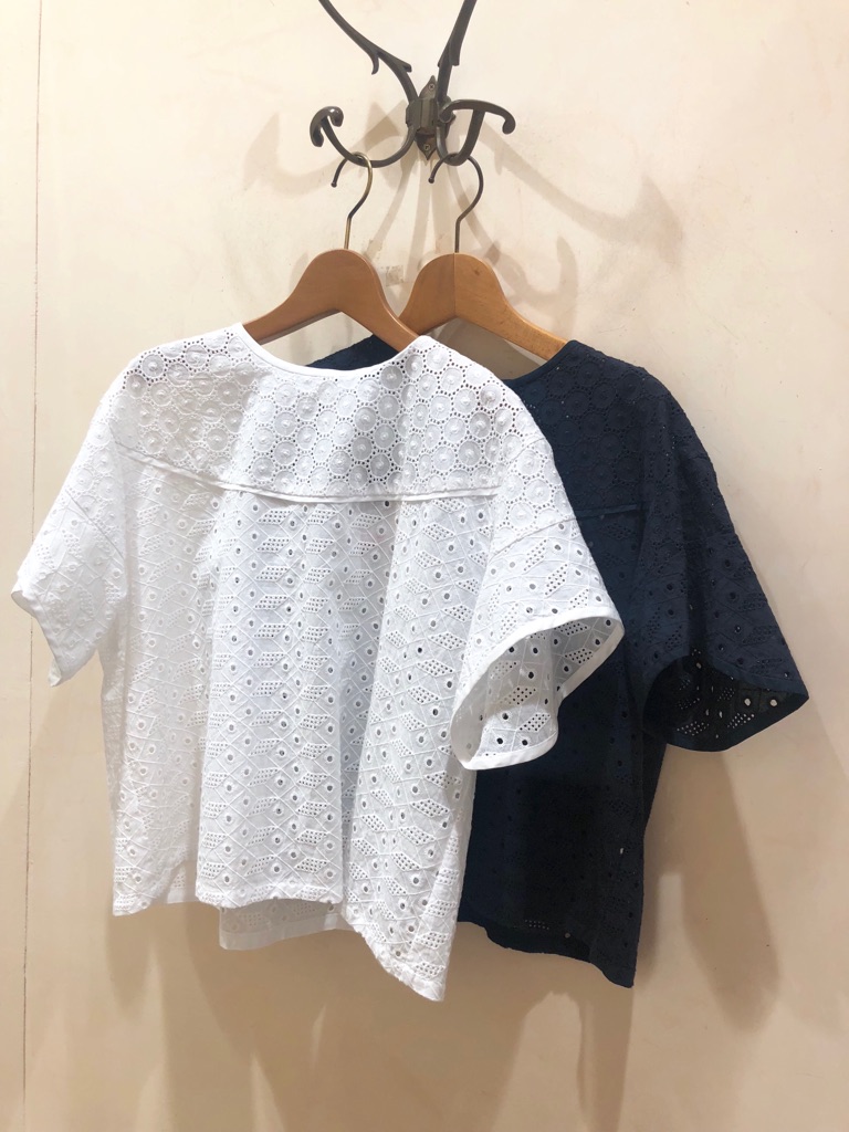 2種類のデザインのカットワークと、フレアな袖が印象的な一枚。
