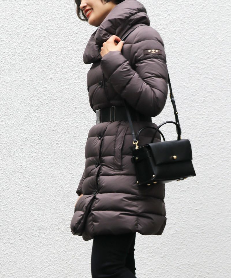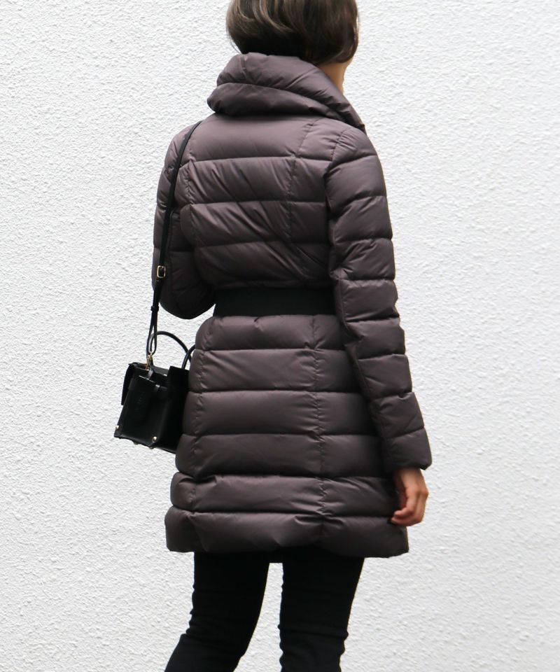 取り外し可能なベルトが腰の高い位置に付いておりウエストのくびれラインをキープし、脚長効果を発揮。きちんと見えてダウンなのにスタイルUP出来る優秀なアウターです。