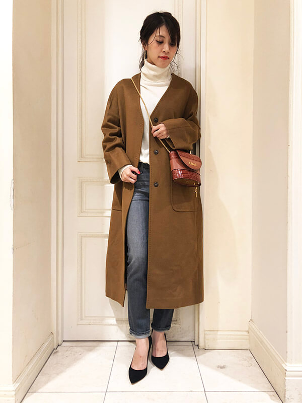 こちらはバージンウールにカシミア混で柔らかく軽いのが特徴のコート。