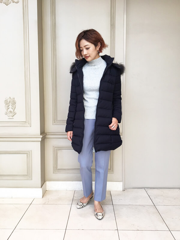 佐久間さんが気合いを入れて着こなしているのはTATRASの人気モデルLAVIANA