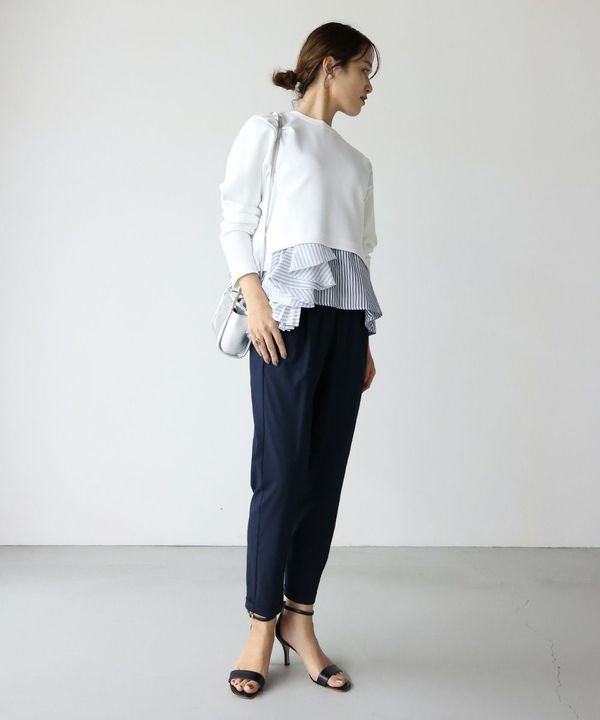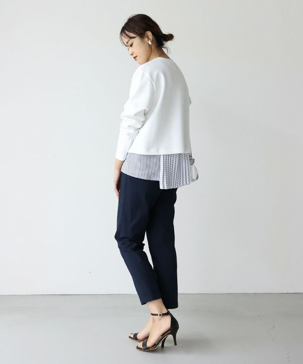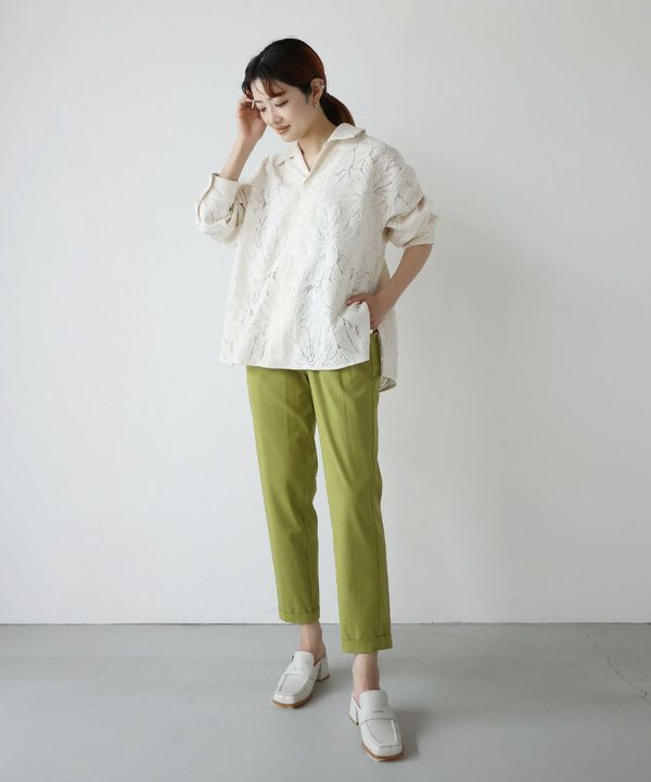 コットンやリネンなど、夏らしい軽い素材との相性もさることながら、布帛のキレイめ素材にも合わせていただけます。