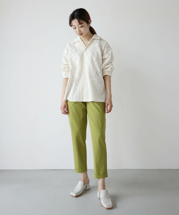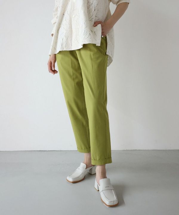 明るすぎない落ち着いたトーンのピスタチオカラーで、着こなしにすっと馴染みながらカラーアイテムらしい存在感も発揮してくれます。