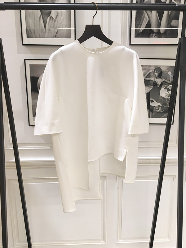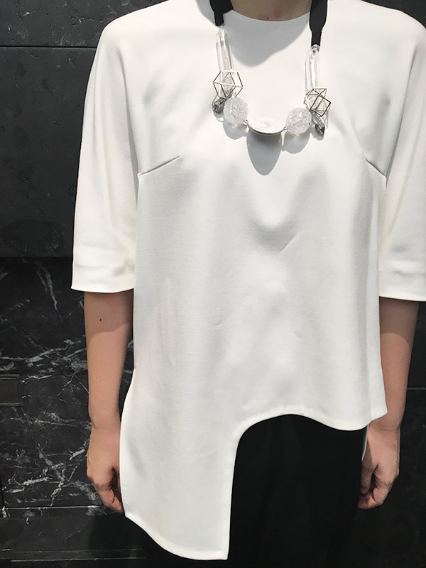 身頃のデザインが、構築的なシルエットを生み出すカットソー。