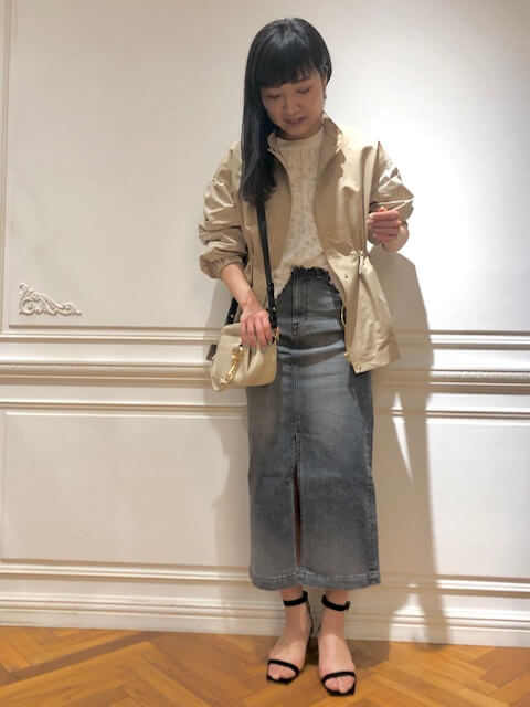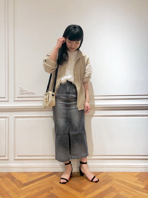 デニムスカートと合わせてカジュアルな中にも女性らしさを。