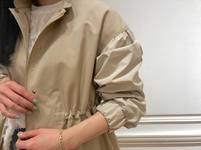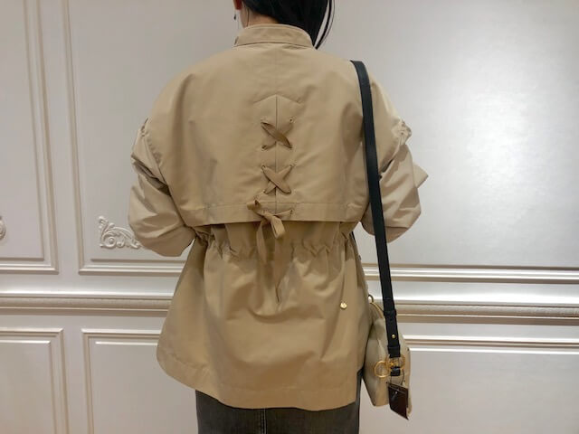 ミリタリーテイストなジャケットですが、MUVEILらしさがたくさん詰まっているんですよ!