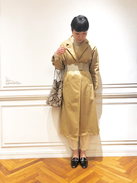 ベルトを変えるとワンピースのような女性らしいシルエットです。