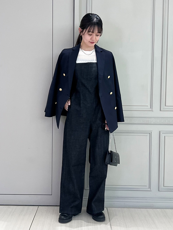 甘めのトップスとレイヤードすることも多いですが、この日はジャケットを合わせてマニッシュなスタイルに。