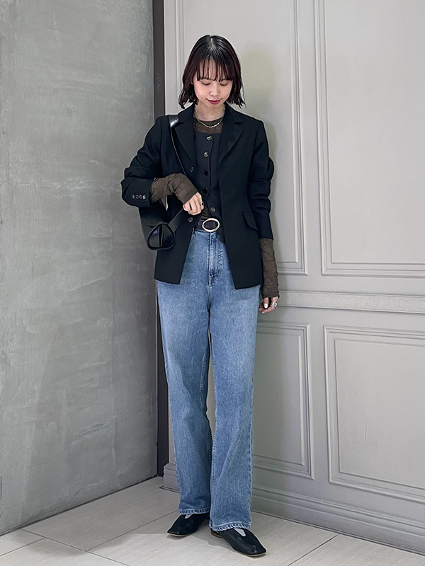パンツに対してトップスはタイトに、ジャケットもウエストがシェイプされたものを選びました。