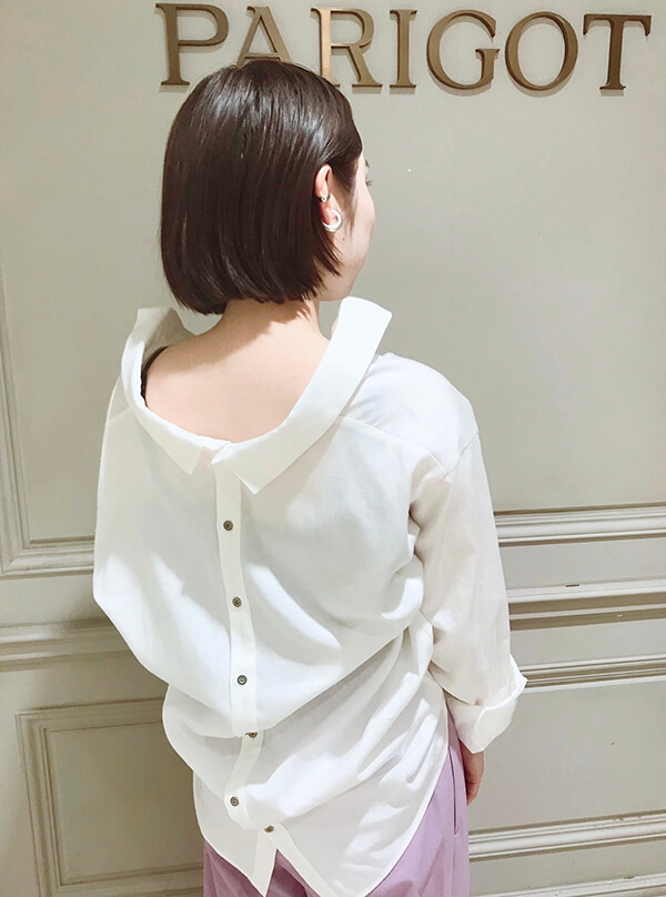 更にこちらは、着るだけでこなれ感出るので後ろに引いたりと、アレンジが不要なシャツなので楽ちんです☆