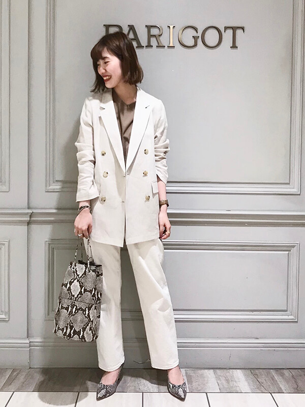 コーデポイントとしては、ワントーンベージュでまとめる事でオシャレ度をグッとアップさせました。