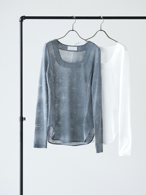 【Mame Kurogouchi(マメ クロゴウチ)】 Shirring Jersey Jacquard Long Sleeve Top