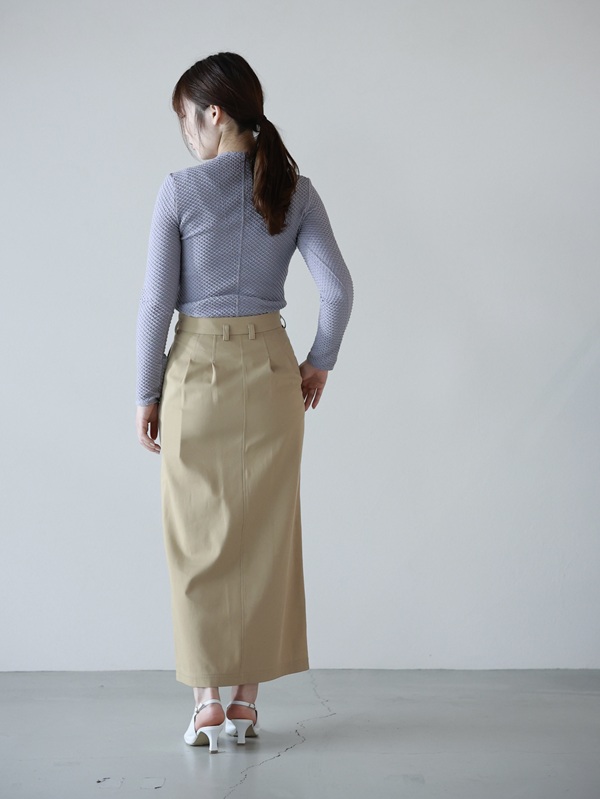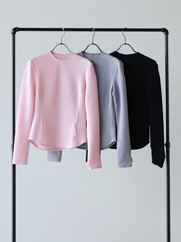 凹凸感のある立体的な素材で、体のラインを拾い過ぎないのに華奢に見える作りになっています。