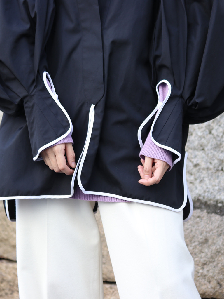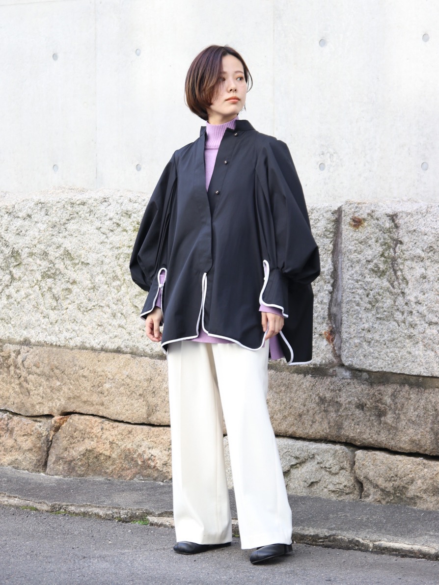 今期のMame Kurogouchi(マメ クロゴウチ)を象徴するアクティブなVラインシルエットが作り出せるボリューミーなシャツトップスです。