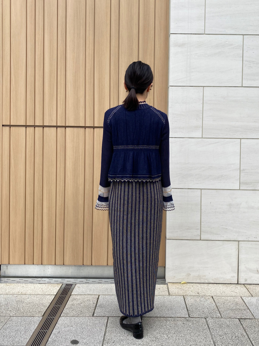 裾には透け感のあるニット素材を使用してあったり、随所に光沢のあるラメ糸を使用したりなど、こだわりの素材をふんだんに使用しています。