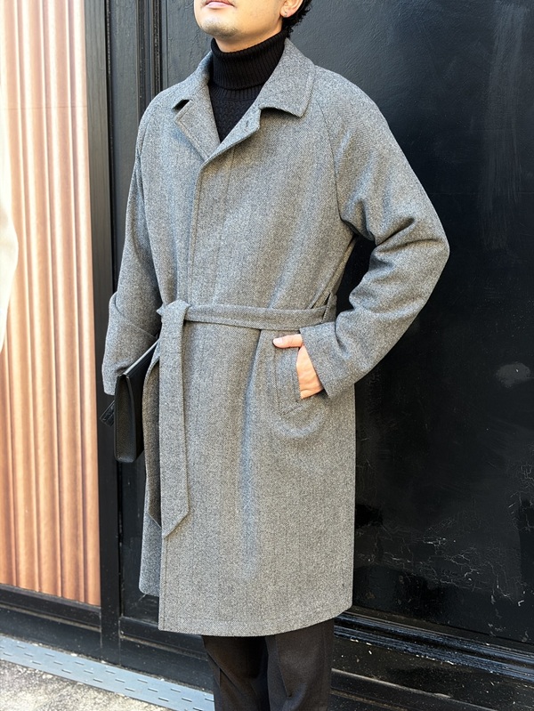 ヴァージンウールの穏やかな起毛は冬の空気に馴染み、軽さと保温性のバランスも秀逸です。スーツにもニットにも違和感なく寄り添い、クラシコの文脈を踏まえつつ現代的に洗練された頼れる一枚です。