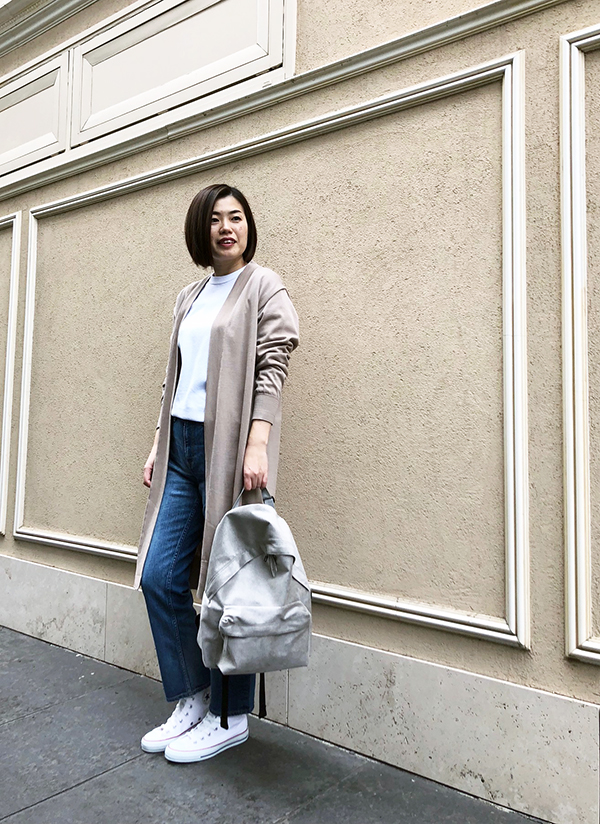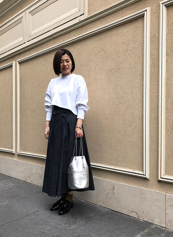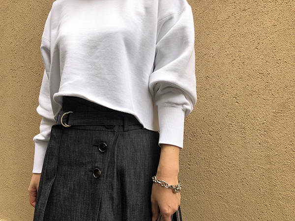 裾は切りっぱなしで、くるっと巻いた感じも好きなデザインです。