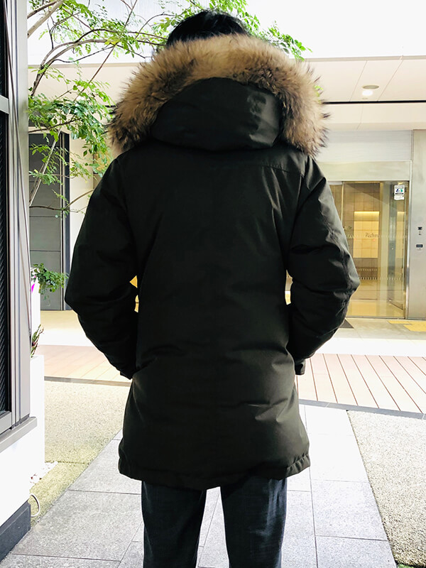 フード廻りのフィンラクーンの毛皮は繊細ながらボリュームがあり、ファスナーで取り外すことが可能です。