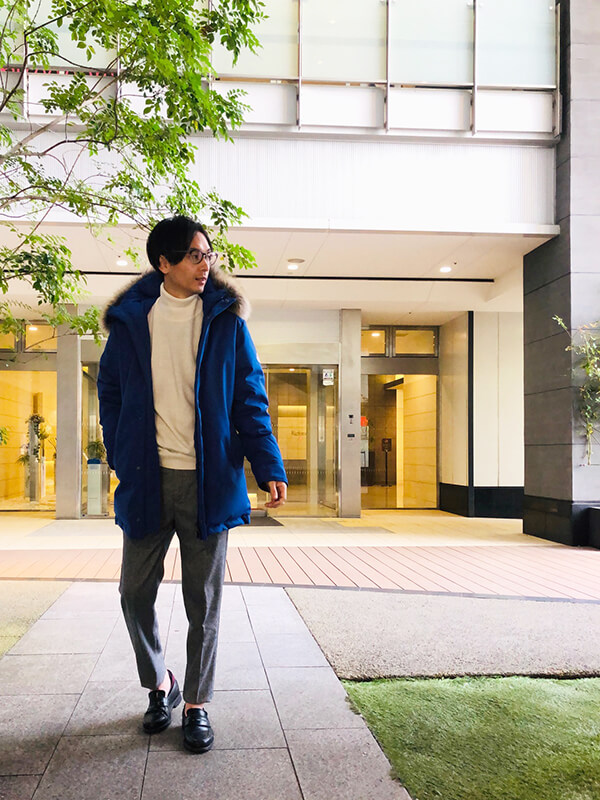 アウターとしては一見、難しそうなブルーも、ダウンになれば、すんなりと取り入れる事が出来ると思います!