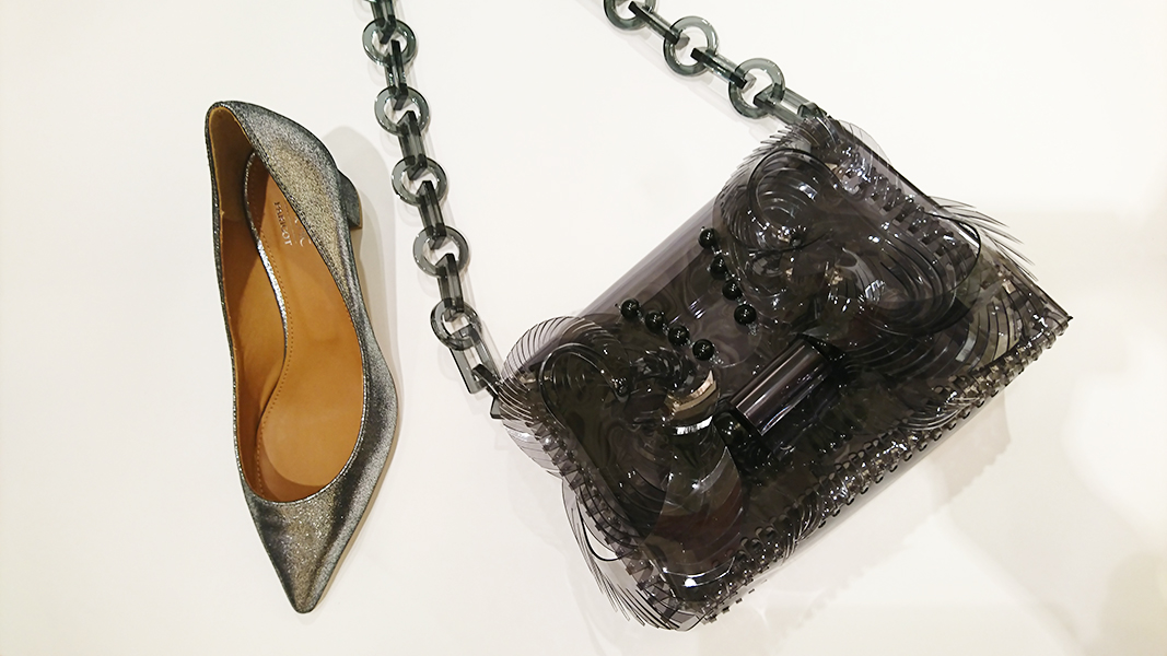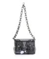 ポリ塩化ビニールのクリア素材を使用したアイコニックなチェーンバッグ。