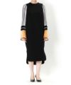 おもちゃのパーツのように本来あるべき姿から解体され、コラージュされ、ニットトップスとドレスへと生まれ変わった1着です。