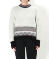 クルーネックの首元はエスニックな印象を与えるジャガードのディティールをデザイン。