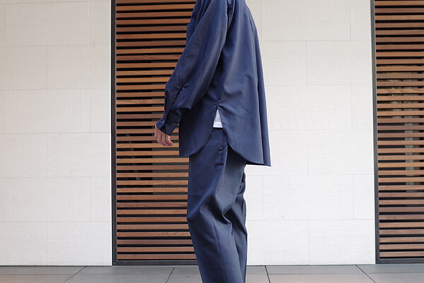 こちらのジャケットは、サイジングとしては少し緩めに作られており、生地も今までご紹介してきたオーガニックウールを使用しているのでサラッとしていて着心地も良く肩肘張らずに羽織れるジャケットになっています。