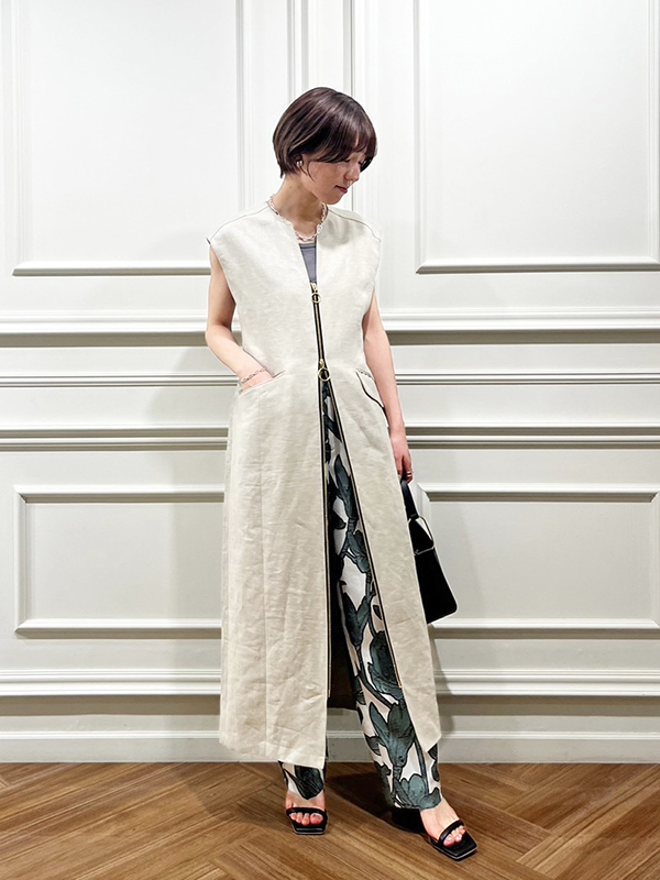 ドレスとしてはもちろん、ジップを全開にしてジレとしても、裾をスリットの様に開けてボトムスとのレイヤードを楽しむこともできる、一石三鳥のアイテムです☆
