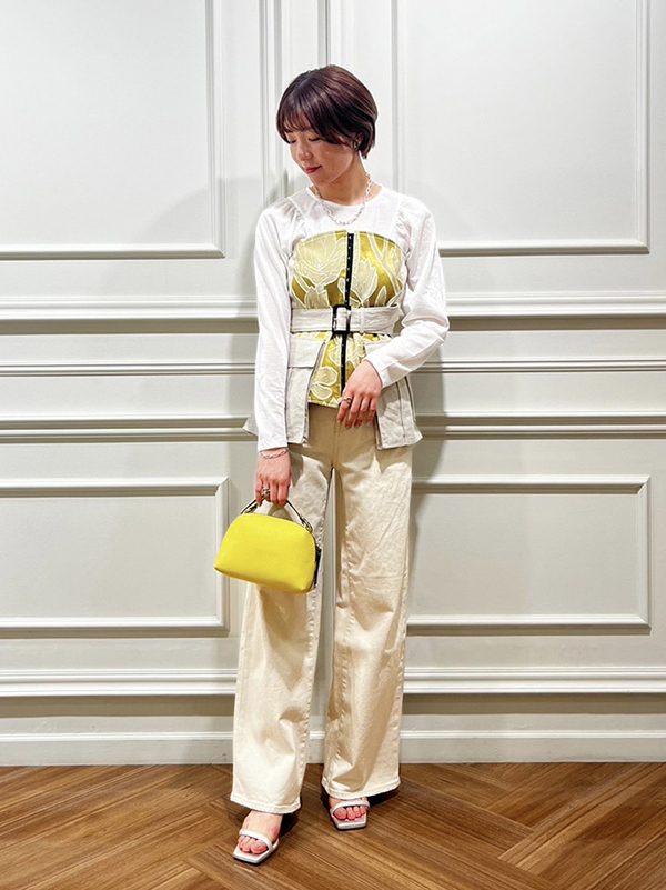 ビスチェは今季の大注目アイテムでもあり、お持ちのカットソーと合わせるだけで旬なスタイリングも叶います!同シリーズのパンツとセットアップで着てゴージャス感ある着こなしにしたり、デニム合わせでカジュアルダウンしたりする着こなしもおすすめです☆