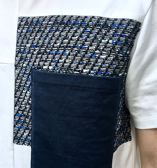 ニットブランドらしく、袖やポケットにはニット生地を使用したハイブリッドなデザインが特徴です。