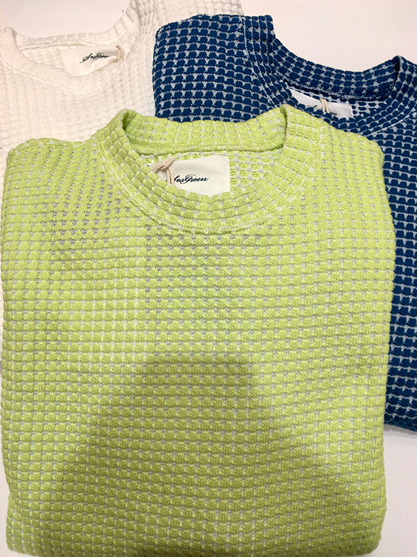 このオニワッフルはシーグリーンの専売特許で、シーグリーンでしか味わう事の出来ない特別な織り方の生地になっています。
