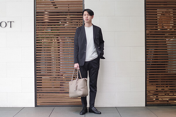 セットアップのスタイルはラフなお仕事用にスタイリングしました。