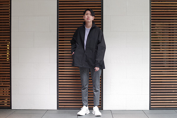 オーバーサイズのブルゾンをメインに合わすことで、トレンド感のある雰囲気に。パンツとのシルエットのギャップもグッドポイントです。