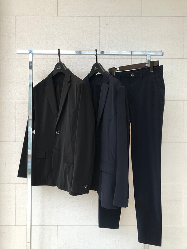 日本人の体型にもスマートに映える細めのパンツを得意とされており、今の細身ブームの一端を作りました。細いだけでなく、着心地にも最大限の配慮をすることにより生まれたジャージパンツは今も、SOLIDO(ソリード)のアイコンアイテムとなっています。