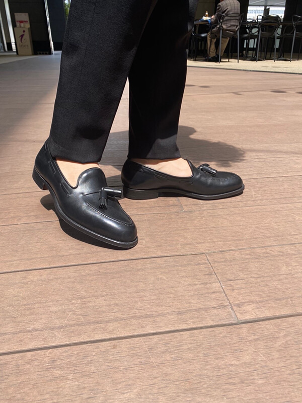 ウェアでカジュアルダウンした分、足元はタッセルローファーでドレス感をキープ。
