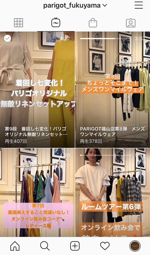 本日はすでに投稿された福山店メンズのIGTV4本をご紹介させていただきます。