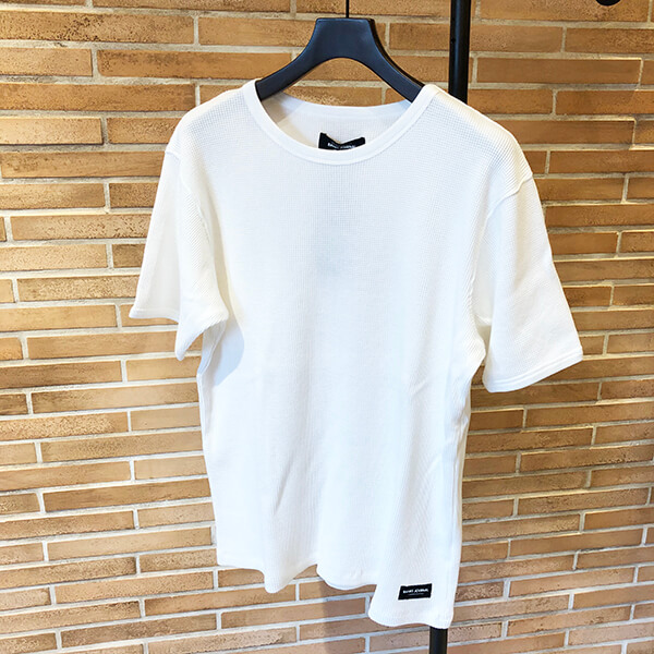 合わせとしてはワッフル地で、カジュアルな素材感なのでデニムやスニーカーと相性抜群。