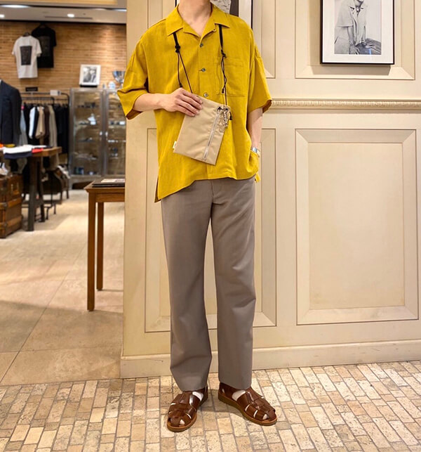 麻が素材で使われており清涼感があるにもかかわらず、レーヨンが使われているため光沢感があり品よくも見え、楽で品がいいという矛盾したお願いを叶えてくれるアイテムになっています。