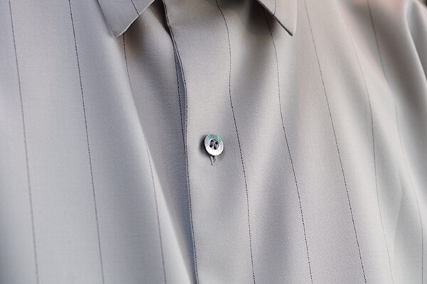 コンパクトなシェルボタンが、ルーズシルエットとのギャップでとてもお洒落です。