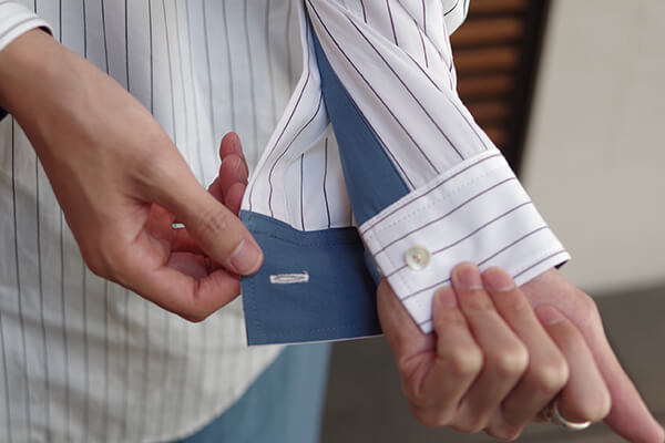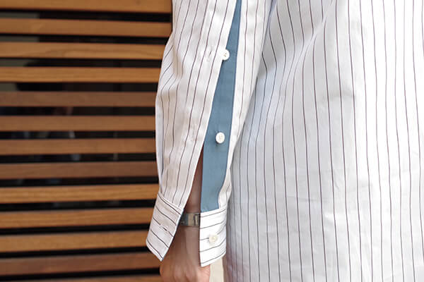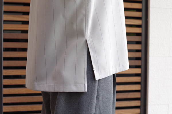 ロングの短冊明きとカフス裏に別布が施されており、程よい主張が素敵です。