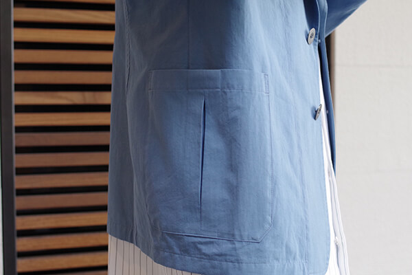ポケットも膨らみをつけることで全体のシルエットなや合うようにバランスをとっています。